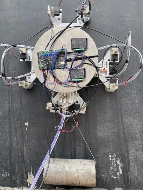 该爬壁工作平台具有多重优势,核心特点如下:在性能上,负重能力突出,实验室阶段已实现150公斤负荷且持续向更高目标突破,同时可负载最大70kg重物进行爬壁作业;采用笛卡尔坐标式移动,控制精度高、稳定性强;依托真空容腔稳定真空度,配合多吸盘共同工作,吸附可靠性强。 功能与适用性方面,因负重强、兼容性广,工作延展性好,可加装机械臂、拦网、感应器等设备应对不同工作;作为负压吸附型机器人,适用于大部分壁面,对不同材质及非光滑墙面均有较好适配性。 成本与市场层面,采用国际标准件,互换性好,制造成本较低;而国内壁面机器人市场尚处发展初期,现存产品种类少、功能单一,且缺乏针对建筑行业的负载型机器人,因此该产品推广价值较高。